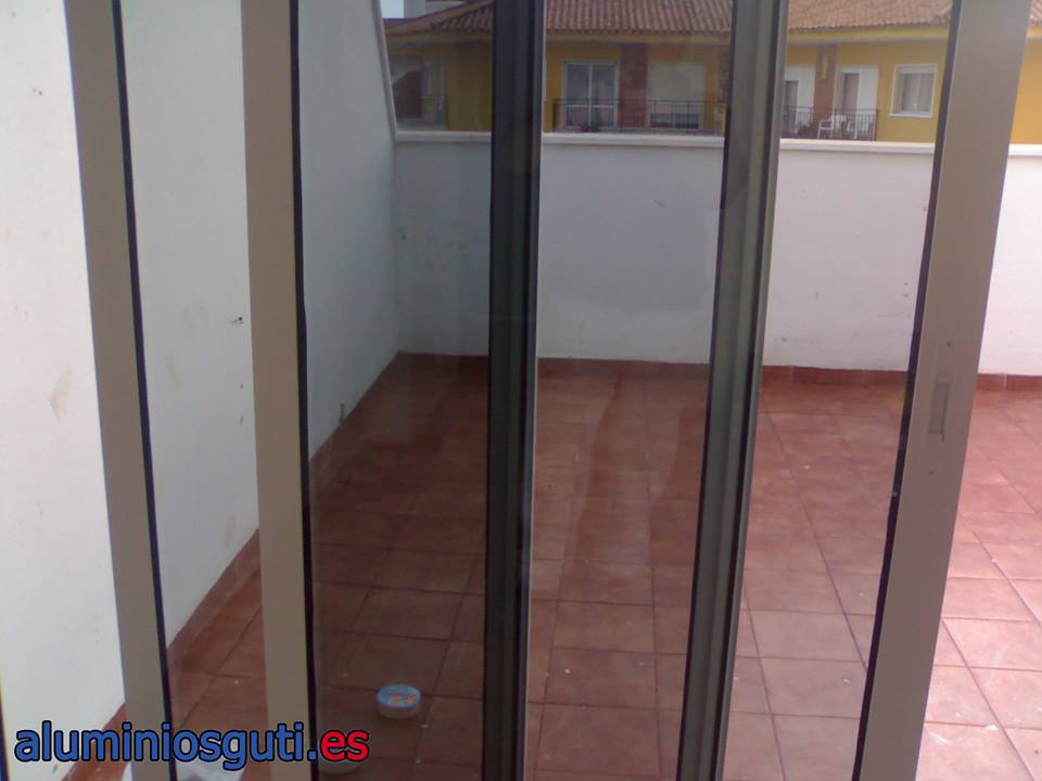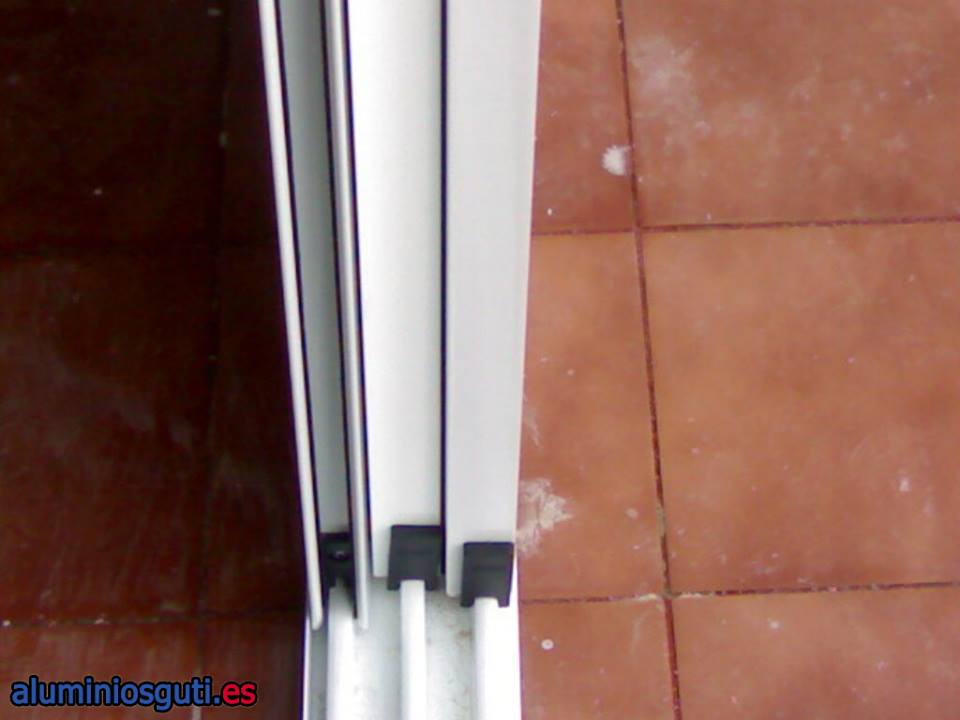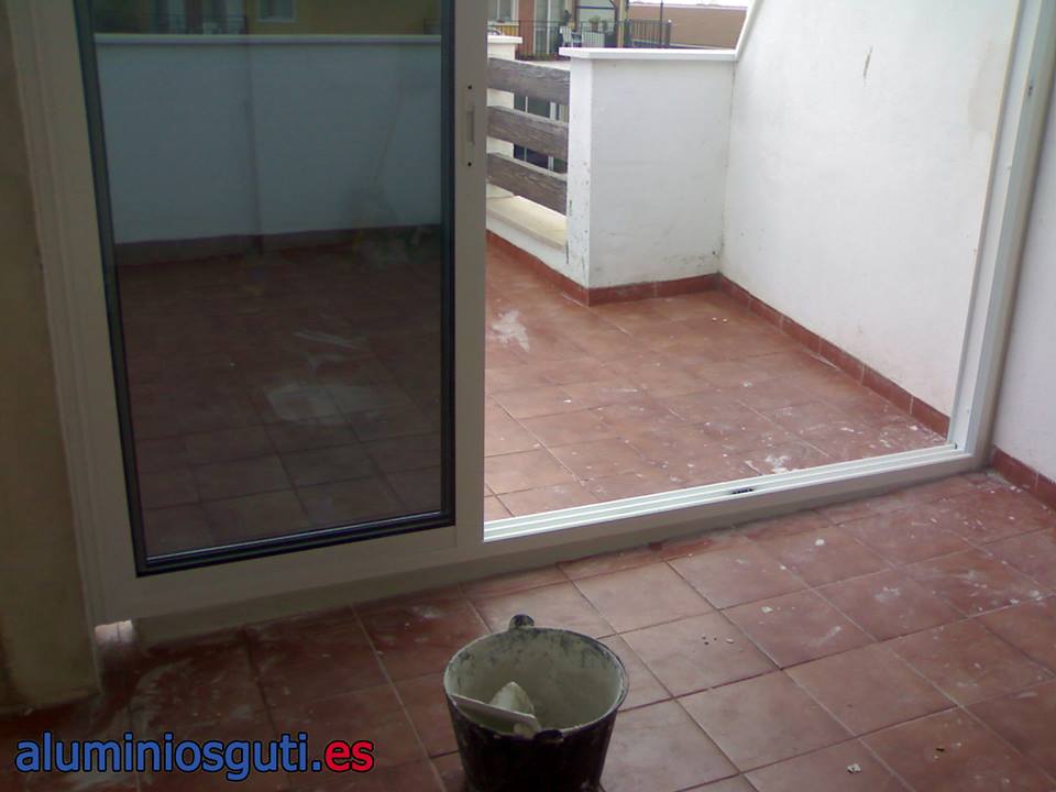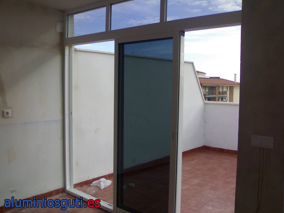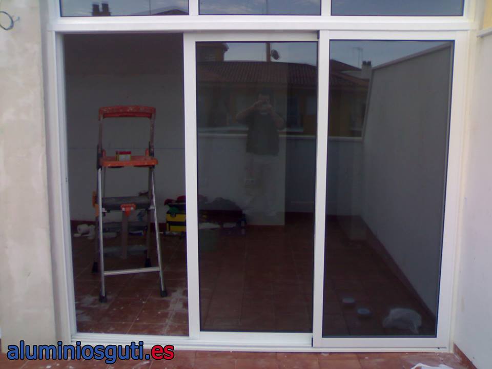 Cerramiento serie tres carriles con tres hojas correderas y fijos en la parte superior. Doble acristalamiento Climalit en hojas y fijos superiores.