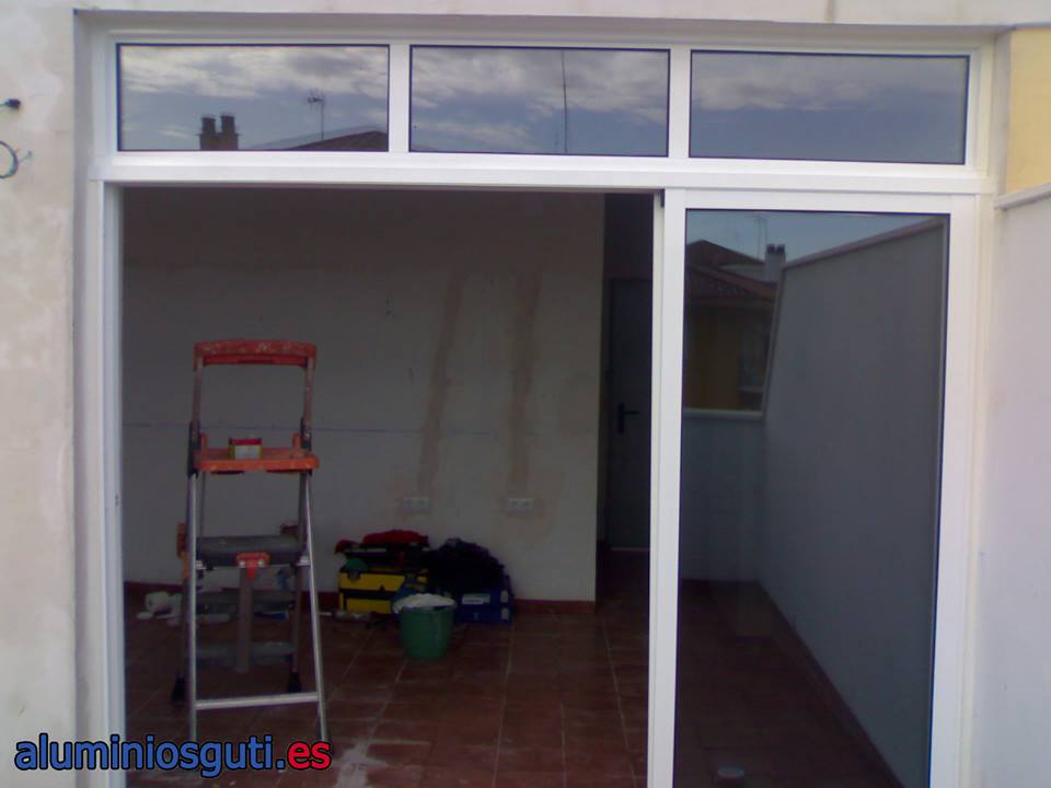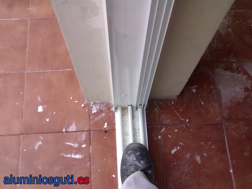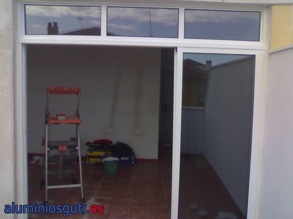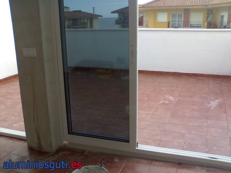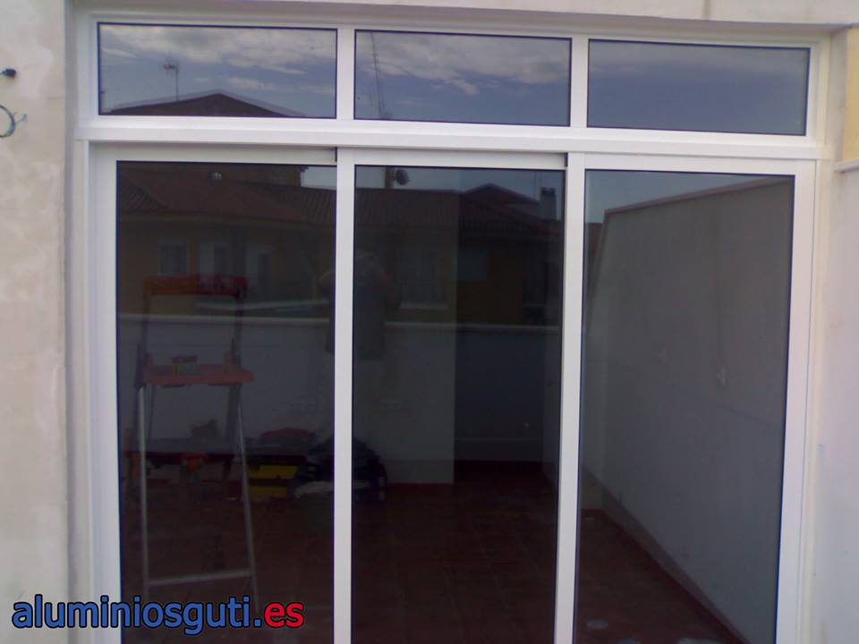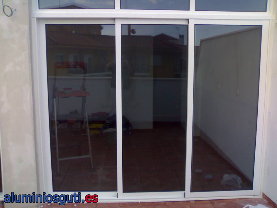 Cerramiento serie tres carriles con tres hojas correderas y fijos en la parte superior. Doble acristalamiento Climalit en hojas y fijos superiores.