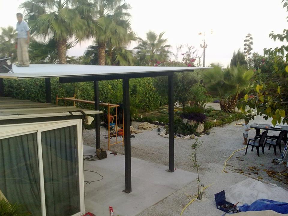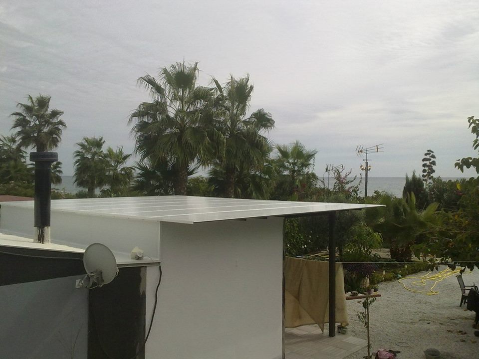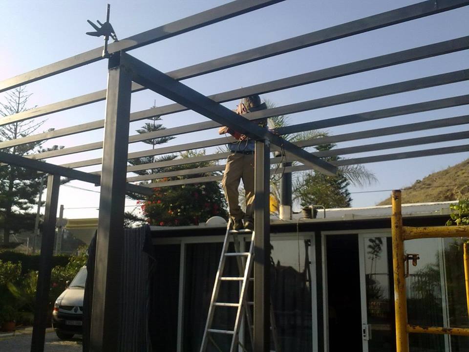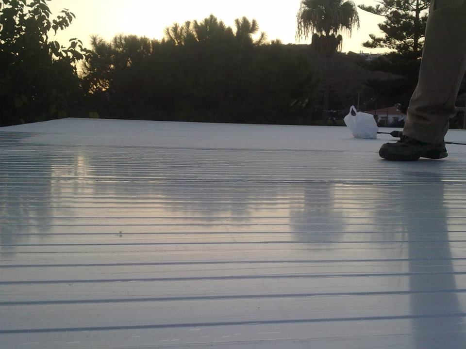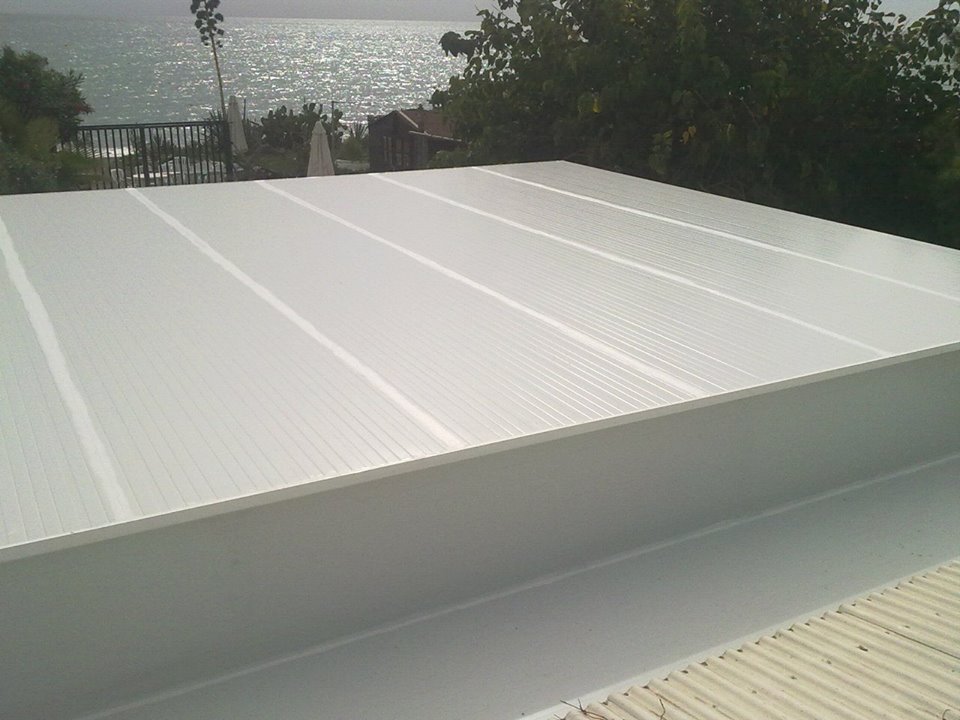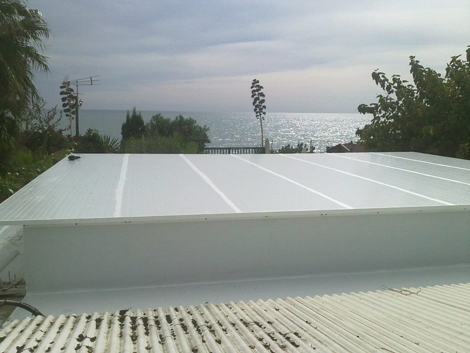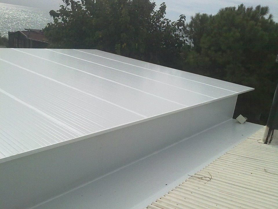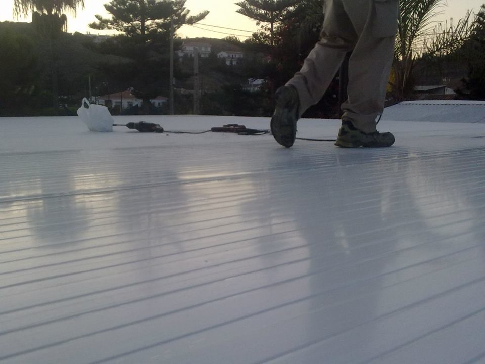 Tejado de chapa cubierta liza en color blanco por las dos cara, instalada con tornillos rosca chapa.