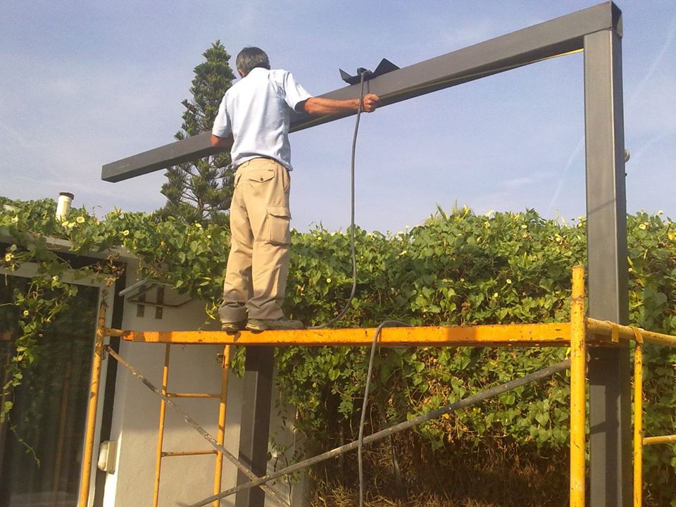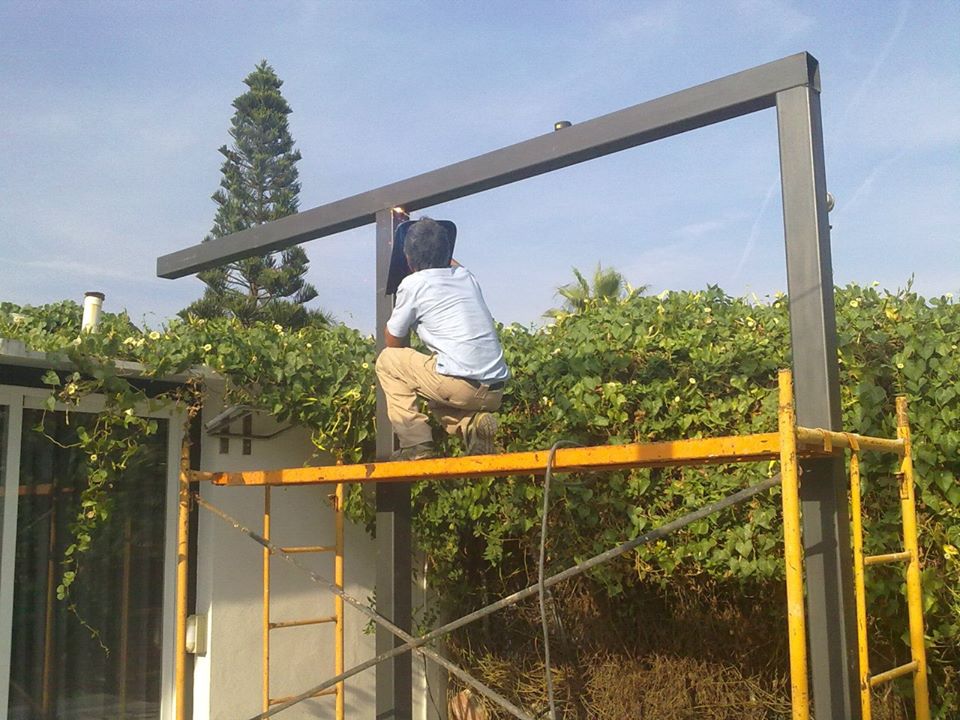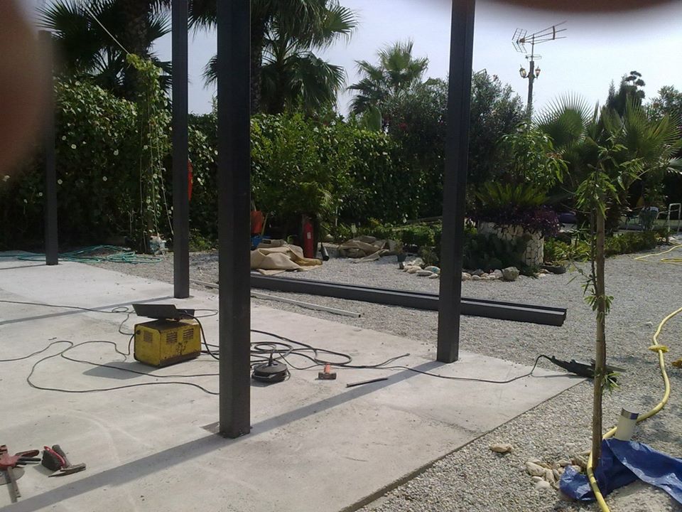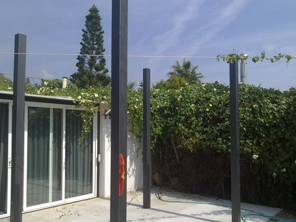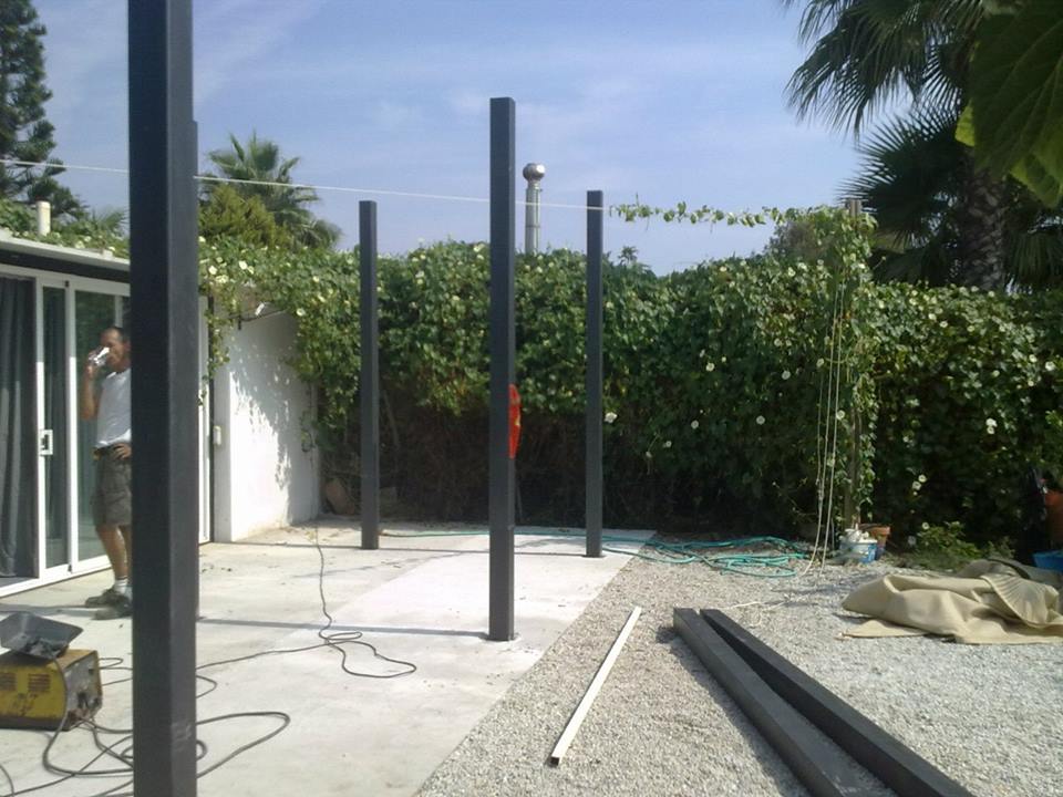 Estructura de tubos cuadrados de hierro galvanizado para fabricar una estructura para levantar paredes de obra y hacer varias habitaciones en su interior.