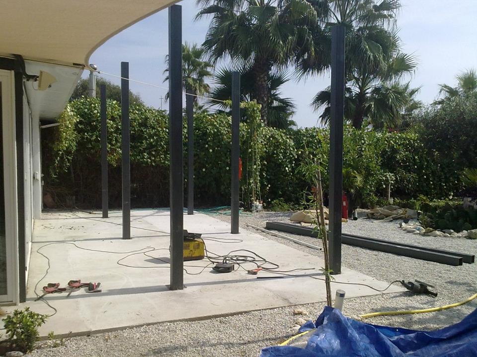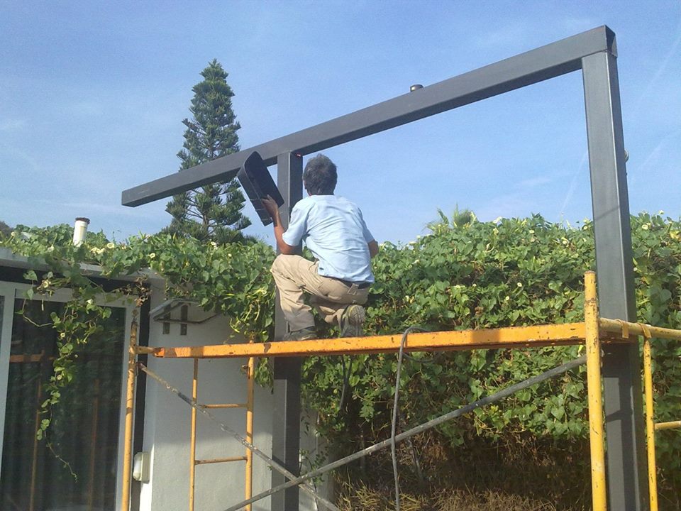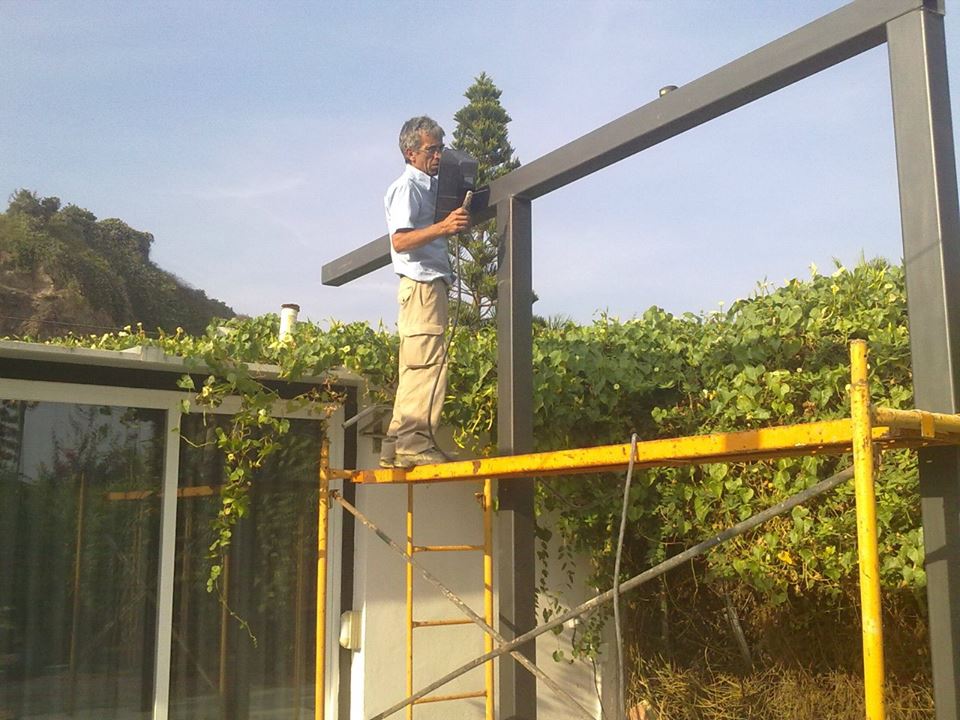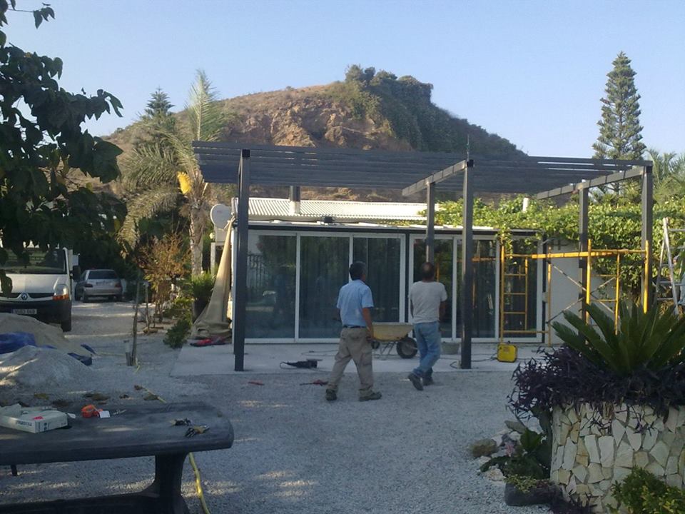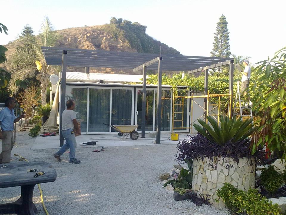 Estructura de tubos cuadrados de hierro galvanizado para fabricar una estructura para levantar paredes de obra y hacer varias habitaciones en su interior.