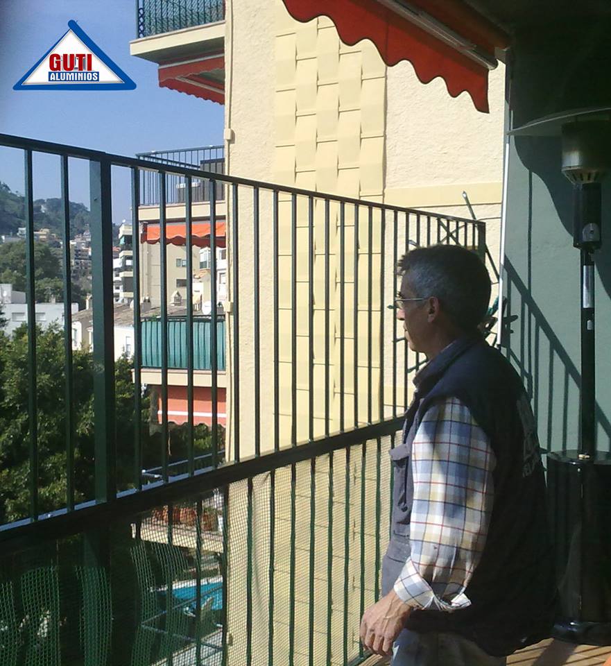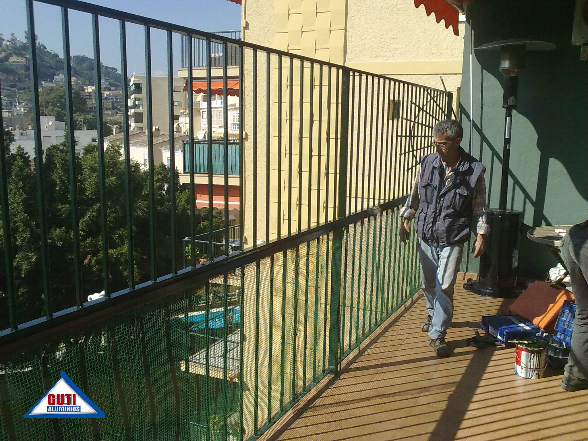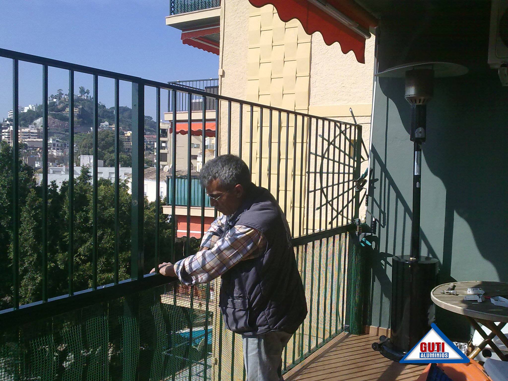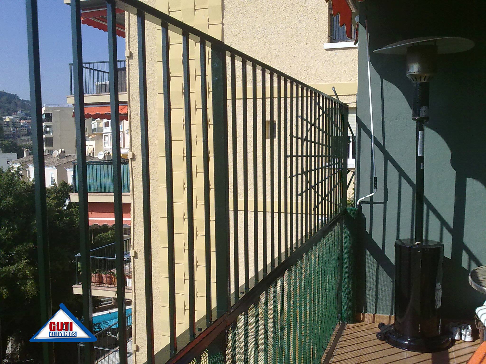 Instalación de dos tramos de baranda de hierro instalada en Málaga capital. Fabricada con barrotes cuadrados y pasamanos rectangular .Pintura dos capa de pintura anticorrosiva y tres capas de pintura en color verde satinado.